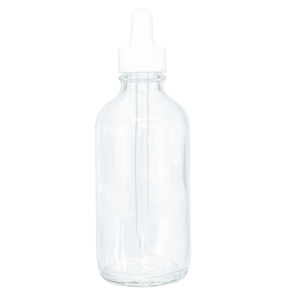 4 oz. Clear Boston Round with White Glass Dropper (22/400) (V23) (V8)