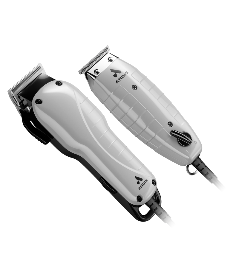 Each client is unique. Meet the demands of your shop with the 17-piece Andis Barber Combo—every tool for every style. Master all-around cuts and bulk removal with this high-speed, lightweight clipper. Adjust the extra-sharp, carbon-steel blades from lengths 000 to 1, or choose one of nine snap-on clip combs for full control. Afterwards, fine tune your creation with the contoured T-Outliner® T-blade trimmer. Pro-quality blades and four high-quality attachments mean precise outlines, fresh fades, and flawlessly close shaves. Complete with a guard and blade oil, the Andis Barber Combo is the all-in-one kit for creating fresh looks.
