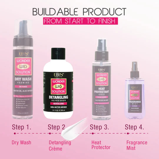 Introducing the Wonder Wig Solution Detangling Refresher, your essential companions for wig care before the wash. These innovative products are designed to enhance and revitalize your wigs, making them easier to manage and maintain. Whether you have synthetic or human hair wigs, extension, Weave, etc. our detangling refresher is the perfect solution to look your best and feeling incredibly soft. Say goodbye to knots and tangles, and hello to perfection with Wonder Wig Solution Detangling Refresher.