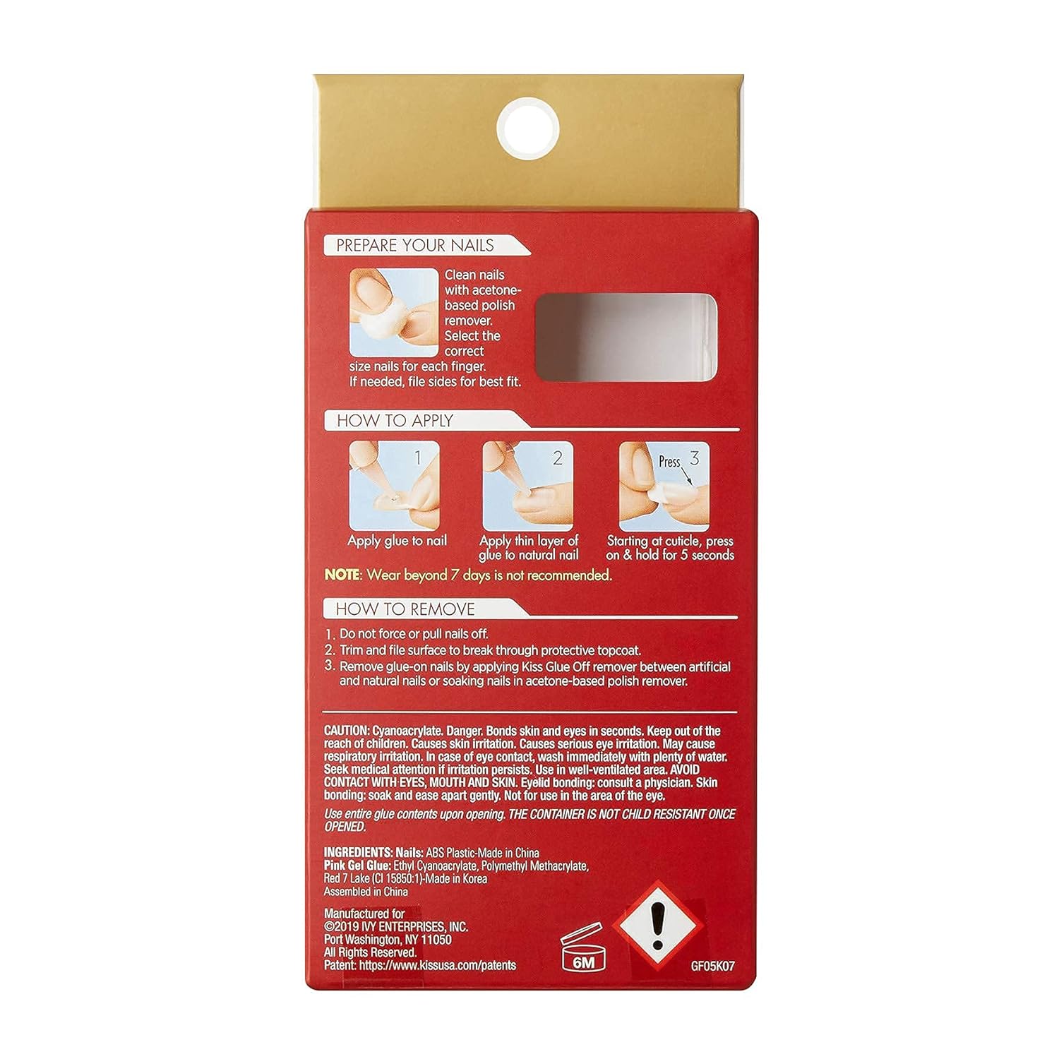 - To apply, apply a drop of glue to the artificial nail, and a drop to your natural nail. Starting at cuticle, press on and hold for 5 seconds