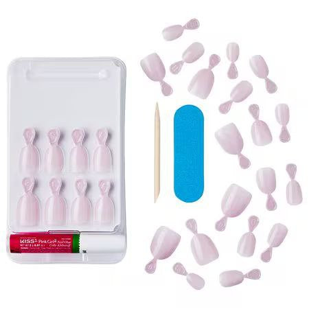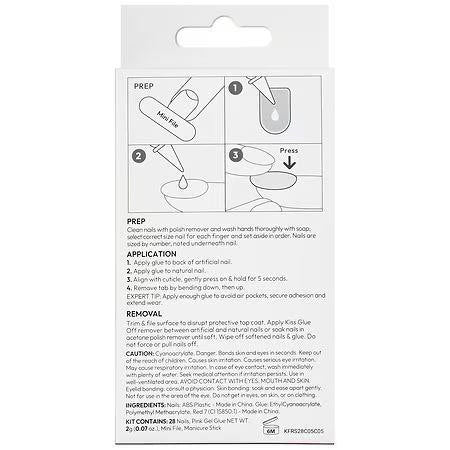 On-trend solid light pink glossy fashion gel nails are real short length & oval shaped; No damage to natural nails; Application takes minutes with long-lasting wear for up to 14 days; Waterproof, chip proof, smudge proof, & no dry time; DIY nail kit contains 28 fake nails, pink gel nail glue (2g), mini nail file, & manicure stick.