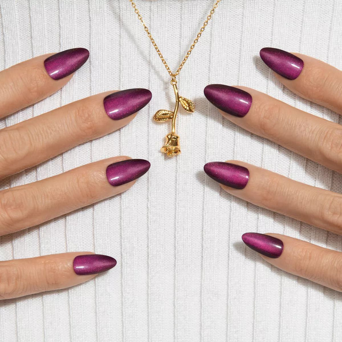 KISS Gel Fantasy Magnetic Press on Nails, Stream, Purple, Medium Almond, 28 Count FMA07