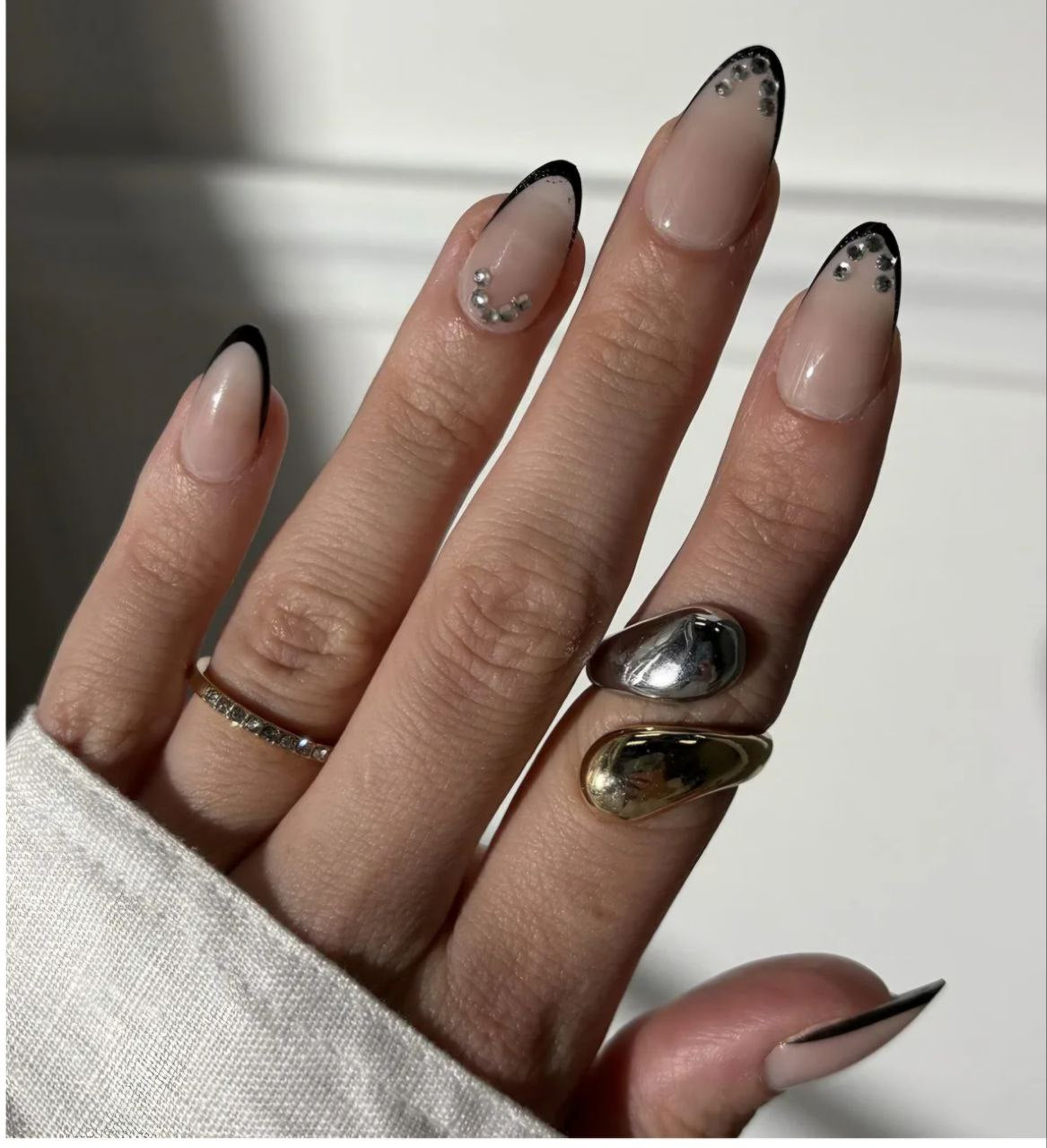 - Black Almond Press On Nails Medium 30 Fake Nails with Nail Glue