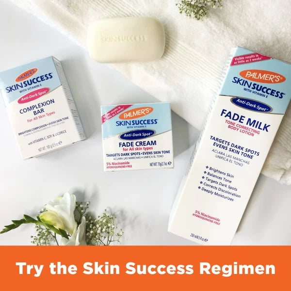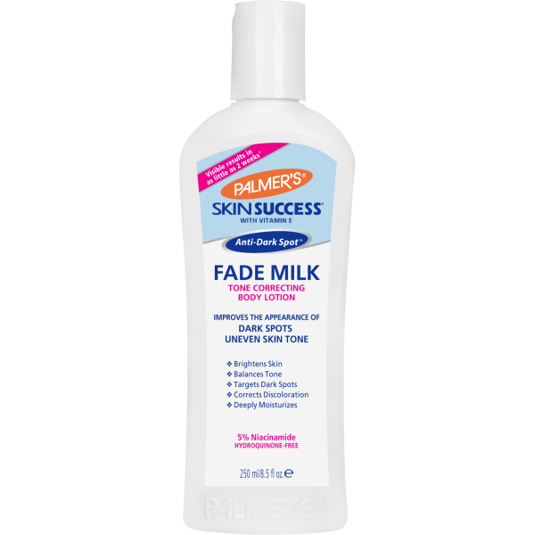 As a product expert, PALMER'S SKIN SUCCESS ANTI-DARK SPOT FADE MILK 8.5OZ is formulated with skin-nourishing ingredients that target dark spots and fade them over time. This results in a more even and radiant complexion. Dermatologist-tested and suitable for all skin types.