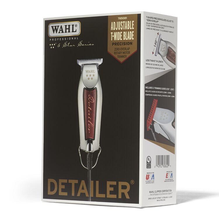 The Wahl Professional line is the most enduring and tenured, of all product lines at Wahl. The Wahl Professional 5 Star Detailer T Blade Trimmer is a compact and powerful very close trimmer/liner yet is powered by a full size clipper motor with adjustable "T" blades. The adjustable "T" blade is great for lining and close trimming.